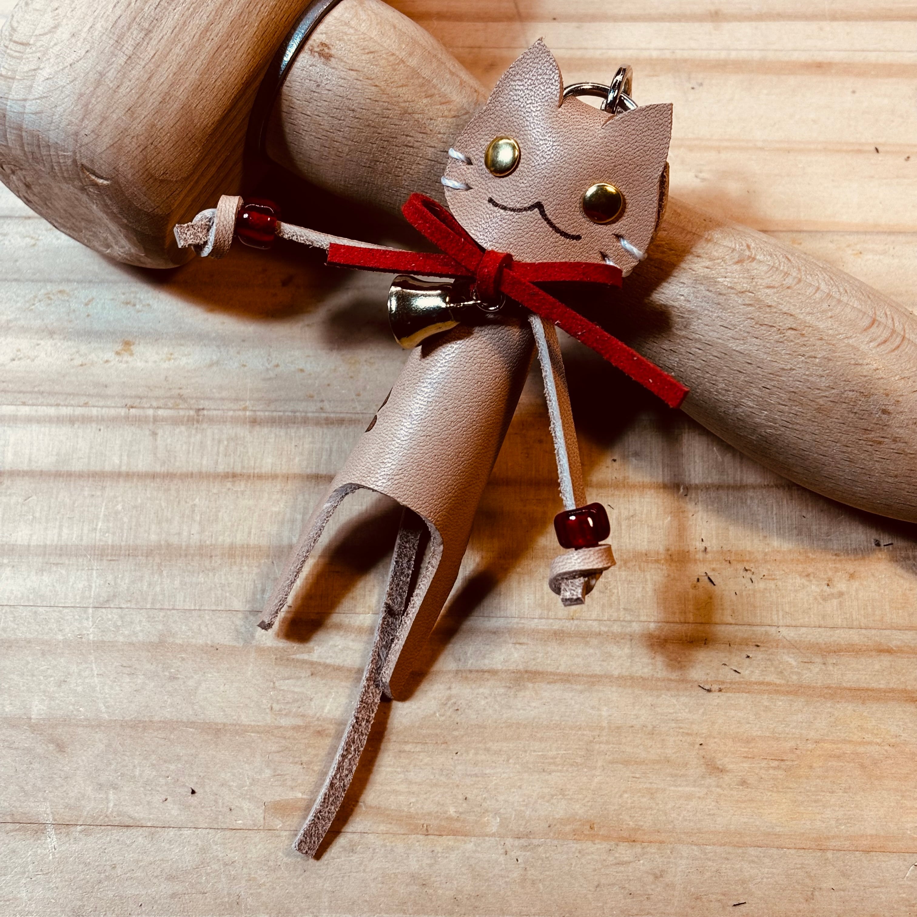 天然素材と手縫いの味わいを生かした革製のネコです。