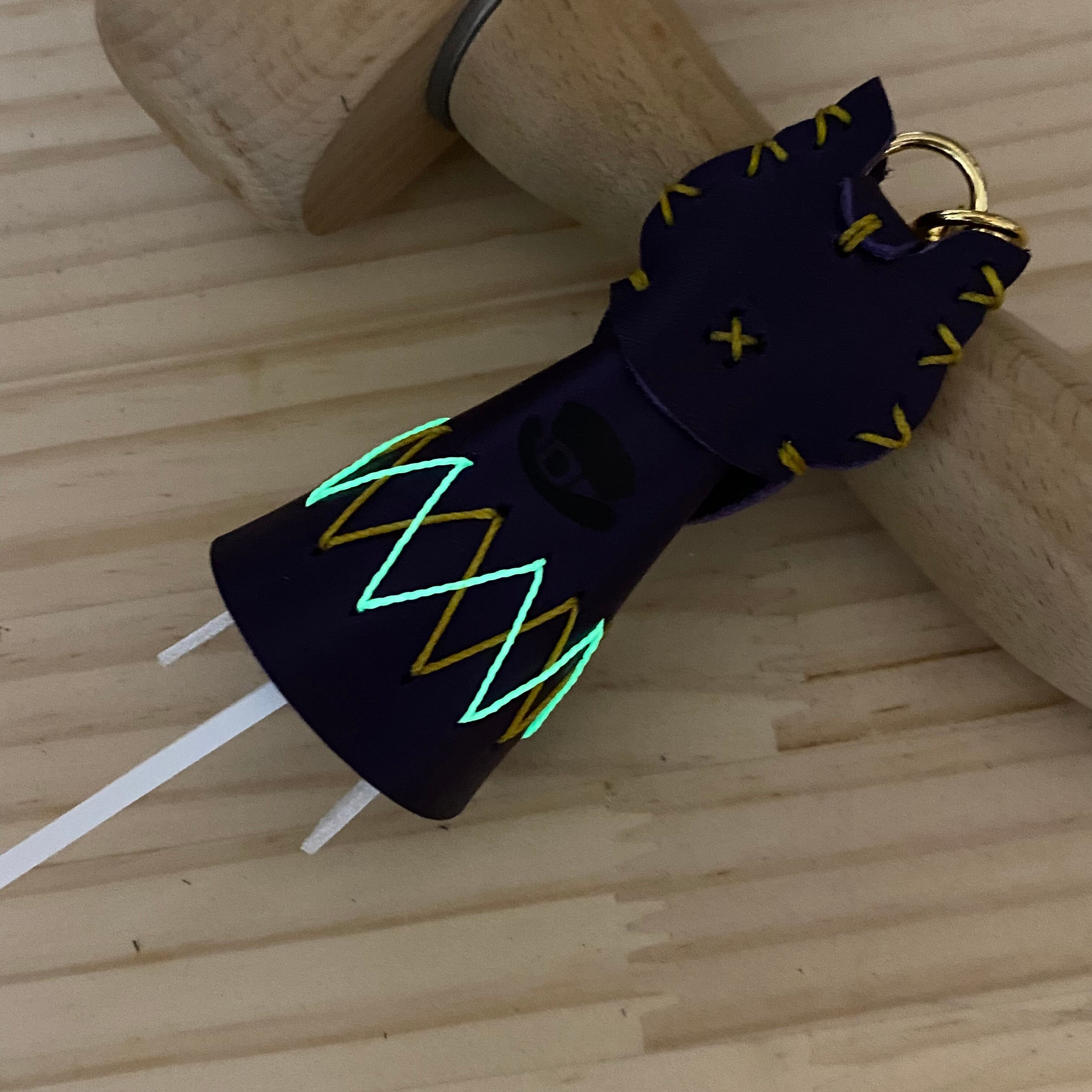 目の部分とケープの飾り縫い部分に蓄光素材を使っているので、暗い場所に持ち込んだりブラックライトを当てる事でぼんやり光ります。