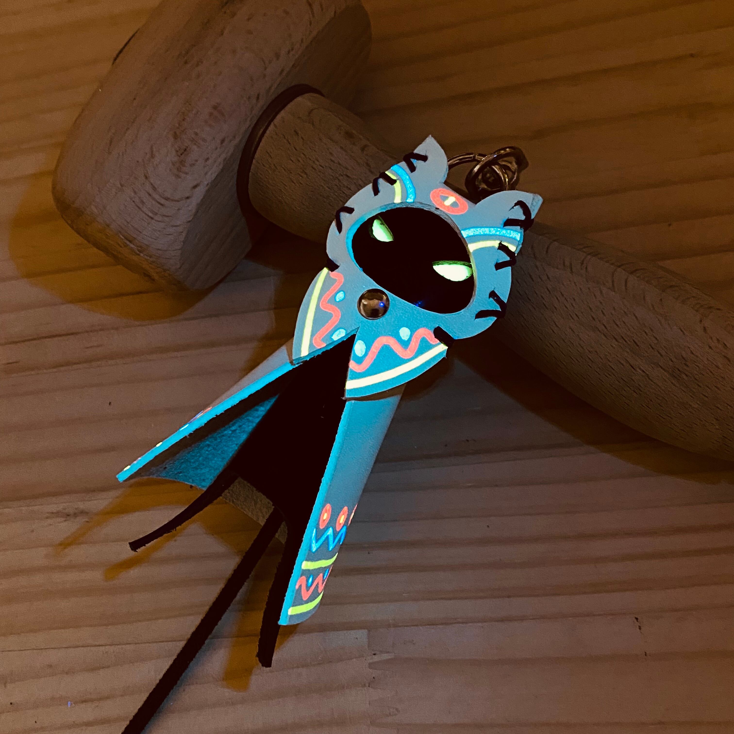 キーホルダー、バッグチャームにどうぞ。天然皮革製のため、徐々にくたびれてリラックスした雰囲気になっていきます。ただし、ペイントに関しては徐々に劣化して発光が鈍くなっていきますのでご理解ください。